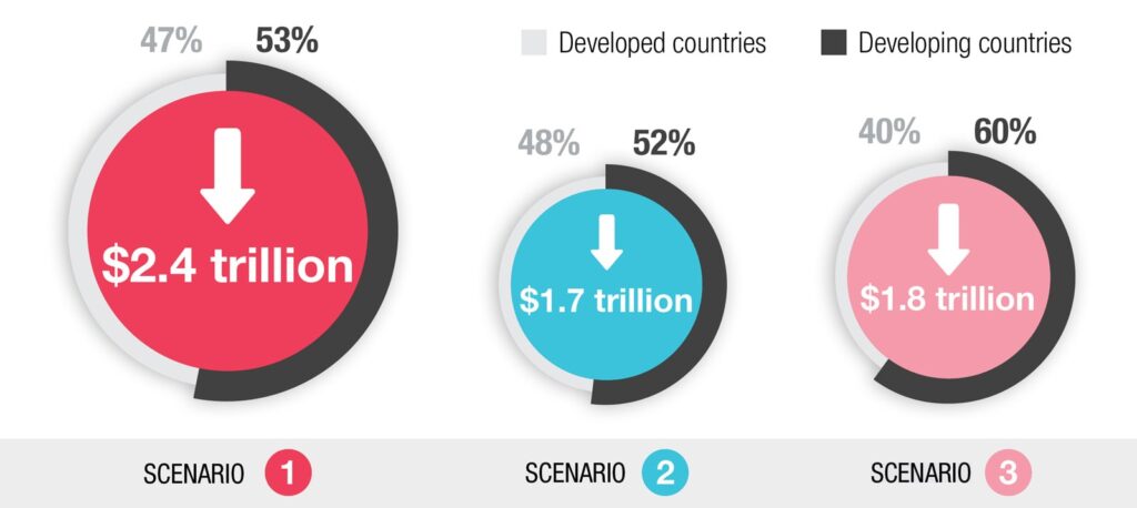 Según el informe, el despliegue asimétrico de las vacunas magnifica el impacto económico en los países en desarrollo, ya que estos podrían representar hasta el 60% de las pérdidas del PIB mundial, así mismo, se espera que el sector turístico se recupere más rápidamente en los países con altas tasas de vacunación, como Francia, Alemania, Suiza, Reino Unido y Estados Unidos.